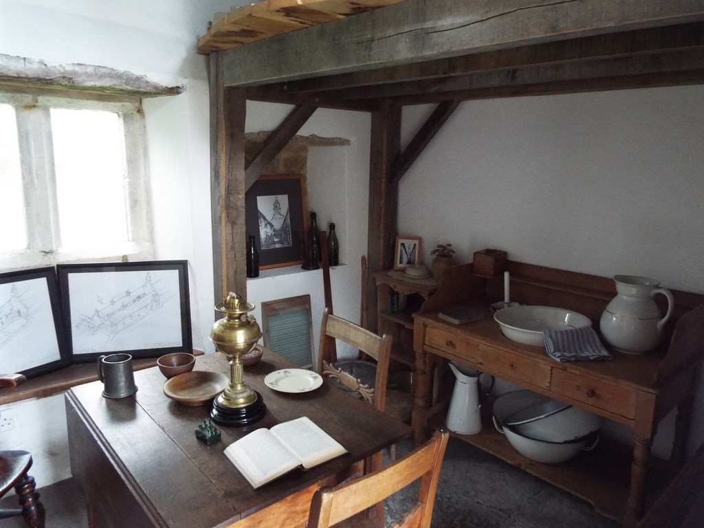 The first almshouse is intended to show how it may have looked around in the late 1800’s. The elevated section is a replica of the bedroom floor that we believe was accessed by a ladder or a spiral staircase.