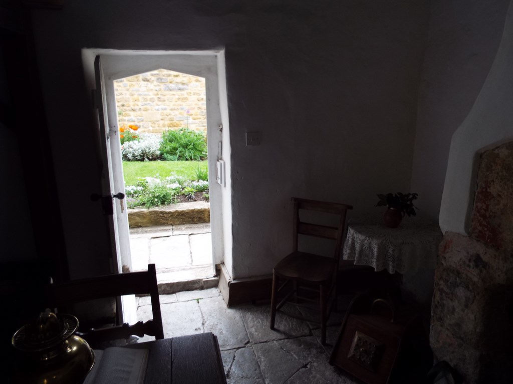 The hospital was built before the chapel and would have covered the area now occupied by the almshouses and garden. It was a large hall with willow hurdles to denote a bedspace and probably a straw bed. This hospital was only for sick men and the monks would bring food and administer medicines.